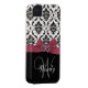 Personalised Initial, Pink, Black Damask Case
