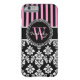 Personalised Initial Pink Black Damask Stripes Case-Mate iPhone Case