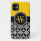 Personalised Initial Yellow Black Damask Case