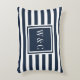 Chic personalised navy blue and white striped accent pillow featuring a navy and white bold square initials monogram. Ideal gift for a wedding or a housewarming gift. You can personalise the initials and customise the colour to a colour of your choice. Designed by Thisisnotme©