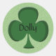 Fun round personalised green Irish shamrock stickers, perfect for St. Patrick's Day, for an Irish lad or lass, or for an Irish wedding. Shown is the fully editable and customisable name, Dolly. (Name can be removed, too.) Designed by 369MyName.