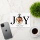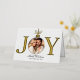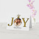 Celebrate the season with a touch of elegance and joy. This festive greeting card features the word “JOY” in bold gold lettering, with the “O” designed as a photo ornament to showcase your favourite family picture. Perfect for sending holiday cheer, the inside offers space for your personal message, making it as heartfelt as it is stylish. A wonderful keepsake, this card is ideal for sharing love, gratitude, and warm wishes with friends and family.
