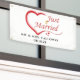 Add a touch of contemporary elegance to your grand exit with our modern cursive "Just Married" banner, designed for your getaway car. This stylish banner features sleek cursive lettering that perfectly captures the joy and excitement of your special day. Celebrate your newlywed status in chic fashion as you drive away with this beautifully crafted banner, making your departure as unforgettable as the rest of your wedding.