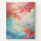 Soft pastel clouds of pink, white, turquoise, orange, yellow, and blue swirl around like a cumulus kaleidoscope. The design also includes a spot to personalise with a name.