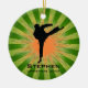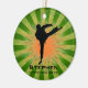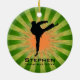 Karate Personalised Ornament Christmas 20XX. Karate pose against a green and orange starburst background. All text customisable, front and back!