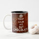 Custom personalised keep calm and eat chocolate mug with name. Create a personalised gift for birthdays and special occasions.