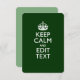 A personalised racy forest green Keep Calm and Carry On style saying on a custom gift. Humourous or whimsical try on your creative words on the two editable lines of text. Remember to use CAPITAL letters for best results.
