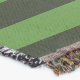 A quality printed throw has its advantages. This is a much finer weave throw than its loopier cousins, and though lighter, it is worth the investment for custom room accessorizing. The back is much prettier than the typical brown, and the fringe on the long sides very vivid, the selvage nicely done. Before photographing, I washed the throw in cold water, delicate, with a thicker woven throw the same size. On tumble dry low, this throw was dry in half the time as the other. This is a very practical quality if you use throws for furniture covers or to wrap up in frequently. The sleekness of the fabric makes it a great layer for accenting or protecting without the feeling of sitting on too much stuff. Perfect for napping or when you feel a light chill coming on. The color printing is beautiful and on this fabric, matched the design and color of my Photoshop image. This is an advantage for blending room fabrics and colors. The fringe on the short sides prints the colors from the design image and therefore varies from the side fringe. I streaked a white fractal line through the plaid pattern to give the illusion of weaving. This printed as crisp as an illusory thread, and put some white in the short side fringe, showing another advantage of print vs loomed- for artistic purposes, line lines, detail, and color integrity can be planned and preserved. My loomed throws have color limitations and more of a needlepoint texture. Print throws reproduce an exact image. The throw felt a little stiff straight out of the package, but this went away in the first delicate wash. Of course I searched the wash water for ink or bleeding and there was none.