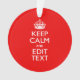 Personalised Keep Calm And Your Text Red Classic Ornament