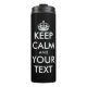 Create your own fun spoof travel mug for friends, family, dad, mum, father, mother, co worker, employee, boss etc. Black and white or customisable background colour.
