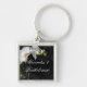 Personalised Keepsake Black & White Orchid Design Key Ring