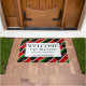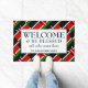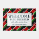 Stylish, Personalised KENYA Welcome Doormat with the wording WELCOME & BE BLESSED ALL WHO ENTER HERE plus placeholder name. The background is the flag of KENYA in an interesting tiled pattern. All text is CUSTOMIZABLE so you can amend the wording to suit your needs, eg. add family name, family motto, inspirational quote.
