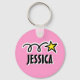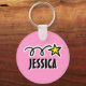 Personalised name keychain for girl | Pink with star design. Cute Birthday gift idea for little girly girls. Customisable background colour.