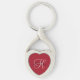 Custom keychain with your initial and name, and with any colour background, colour font or font type. Just choose the personalise, then customise option. Designed by HAMbyWhiteGlove, fulfilled by Zazzle. Shown on a heart shaped keychain with a red background, black initial and grey name text.