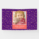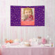 Celebrate your little one's special day in style with this festive custom purple banner that features a fun photo with a beautiful gold princess or queen crown. In the background there is an elegant background of gold shimmery lines.