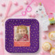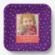 Celebrate your little one's special day in royal style with this custom purple paper plate that features an elegant background of gold shimmery stars. Personalise this bright design with a photo of your young birthday girl, complete with a beautiful gold princess crown.