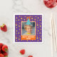 Celebrate your little one's birthday with a festive custom purple paper napkin that features a fun display of orange and yellow stars and circles. Personalise this bright design with a photo of your little birthday boy or girl, complete with a cheerful blue birthday hat.