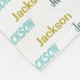 This personalised name blanket is perfect for a new baby or any child! This blanket features a repeat name pattern in blue, green, and grey. These blankets make adorable photo props and baby shower gifts and are sure to become a treasured keepsake.