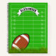 Personalised sports themed notebook featuring a bright green football field, a vector drawn football, and your childs name.