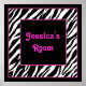 Personalised Kids Wall Decor. Sassy decorative poster for your teen or pre-teen diva! Black and white zebra stripes with hot pink text and accents.