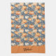 Personalised kitchen towel featuring a fall-themed design. The towel has a blue background decorated with a repeating watercolor pattern of orange and white pumpkins, small flowers, and autumn leaves. At the bottom , there is a solid orange panel with your name in a stylish handwritten font, making it customisable. The overall look is festive, seasonal, and perfect for autumn cooking or holiday gatherings.