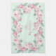 Cottage chic personalised kitchen towel, floral with pink roses in pink and mint colours. Add your own text.