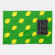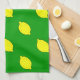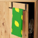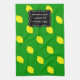 Personalised kitchen towel with yellow lemons pattern. Cute gift idea for home or business. Customisable background colour and text. Healthy fruity food / diet theme. Famous quote: When life gives you lemons make lemonade.