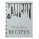 Personalised kitchen utensils recipe notebook. Add your own name.