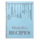 Personalised kitchen utensils recipe notebook. Add your own name.