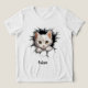Personalised kitten peeking out of faux hole Tri-Blend shirt