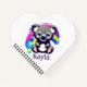 Cute cartoon koala bear sitting in front of a rainbow personalised heart shaped paper notebook.