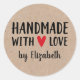 A personalised rustic "handmade with love" sticker on a kraft coloured background. Make it yours by adding your own name. A pretty finishing touch for all of your handmade gifts. Designed for you by Blackberry Boulevard.