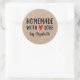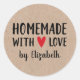 A personalised 3 inch "homemade with love" sticker on a kraft coloured background. Make it yours by adding your own name. A pretty finishing touch for all of your handmade gifts. Designed for you by Blackberry Boulevard.