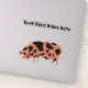 The decal is perfect...it arrived ahead of schedule, was well priced and functions as a nice give away for our customers. It adheres well too. Chandler. Great job...the printing is very clear...