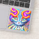 Add your name to this cool robot colourful kitty cat with mystical green eyes and colourful fur AI generated art stickers.