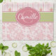 Delicate pink lace and wallpaper stripes with English roses adorn this elegantly feminine design. Personalised with your name and initial.