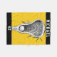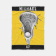 Unique lacrosse stick and ball design on a yellow gold background. Edit text to add lax player's name and team number #.