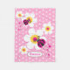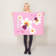 Personalised pink ladybug and flowers name blanket. Pretty personalised name blanket in pink with bright pink ladybugs / ladybirds and white and yellow graphic flowers. Makes a unique personalised girls birthday or celebration gift. Customise with your own girls name currently reads Yvonne. Ideal for travelling and to keep warm on winter evenings. Background colour can be changed if required currently light pink. © Original graphic art and design uniquely created by Sarah Trett for www.mylittleeden.com on zazzle.