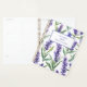 Lavender flowers planner for 2025 with monthly and weekly pages for the whole year. Personalise it with your name or any message on the front cover and choose between a soft or hardcover, and a gold, black, or white spiral.