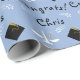 Law school graduation gift wrap and party decoration for the grad featuring scales of justice on light blue background. Edit text to add graduate's name.