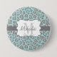 Leopard print design personalised button in blue and grey with a grey stripe, white edged with grey banner that you can customise with a monogram initial and name!