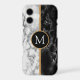 Personalised Monogram iPhone Cases with Black and White Check Marble Design - Add Your Letter / or Year / Number / More with Customisation tool ! MIGNED Design