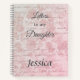 Customise this journal with any name and even change "Letters to my Daughter" to "Letters to my Baby Girl" or anything you'd like. The beautiful background is a light pink with cursive writing and flowers.