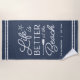 Upgrade your outdoor setup at your seaside abode with this cute personalised beach towel featuring the phrase "life is better at the beach" in white lettering accented with a starfish and an oar. Personalise with your family name and/or year established beneath.