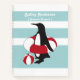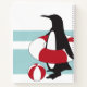 A penguin is standing with a red and white inner tube and beach ball with a light blue and white background. This pretty animal cartoon with personalised text makes a cute and unique notebook.