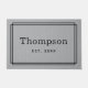 This simple and elegant custom monogrammed doormat features your family's last name in handsome serif block lettering with the year established below and a stylish striped border design. A beautiful keepsake gift for newlyweds or new homeowners. Includes a grey burlap background layer with a rustic textured appearance. Neutral light grey and black design colours can be modified to coordinate with your home decor.
