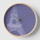 Lavender Veri Peri Eiffel Tower White Dots Custom Wall Clock - Your Name - or change to read whatever you like. You Choose Background colour - black changes to any colour. To change colour click customise then edit and use the last tool on the drop down menu to choose from the colour swatches or enter your RGB code for a one of a kind designer clock!