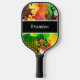 Add your name to this Modern pour painting effect lime green, yellow, brown and black abstract art pickleball paddle.