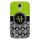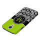 Girly, lime green background, black and white floral damask pattern with a decorative circle label where you can add your name and monogram initial in gorgeous script fonts. Design by Elke Clarke©2012 for MONOGRAMGALLERY