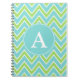 A lime and turquoise chevron pattern decorates this stylish notebook. Personalise this monogrammed notebook by changing the monogram letter. This notebook is great for school, travel, business, etc...The design is from original art.